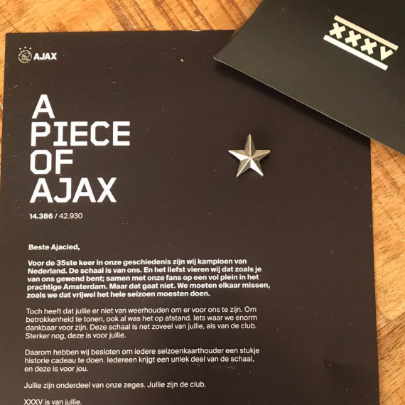 En los Países Bajos, 42.930 socios del Club Ajax recibieron o van a recibir un sobre que contiene una pequeña estrella de plata, junto con una carta que comienza con el título "Un pedacito de Ajax".