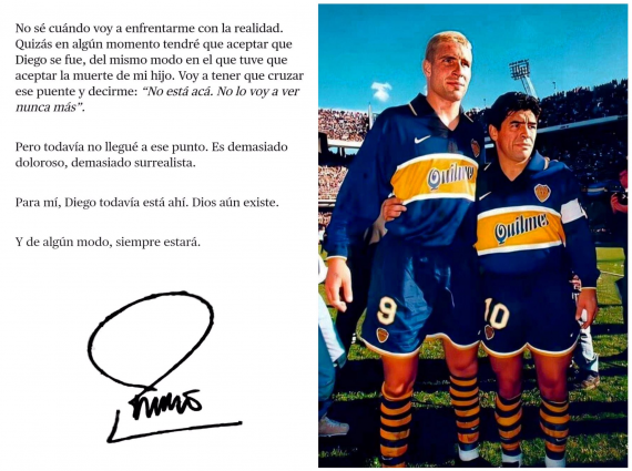 "Pero todavía no llegué a ese punto. Es demasiado doloroso, demasiado surrealista. Para mí, Diego todavía está ahí. Dios aún existe. Y de algún modo, siempre estará", concluyó el Titán, firmando de puño y letra la carta.