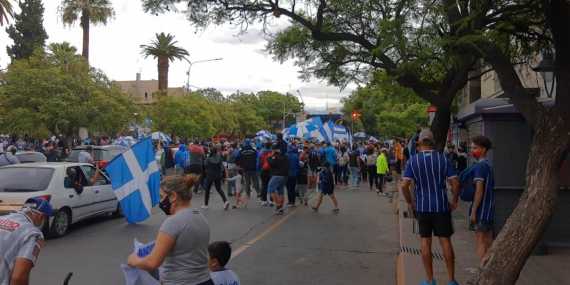"Queremos que se respeten nuestros colores, nuestra historia y nuestra gente, como siempre", expresaron en publicaciones en las rede sociales. Cerca de las 18 comenzaron a congregarse más de 700 personas en la Plaza Godoy Cruz y luego iniciaron una marcha hacia la sede social en calle Balcarce. "Tu ciclo terminó", expresaban pancartas con el nombre mal escrito del dirigente.