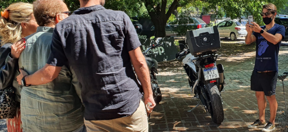 El futbolista de River caminaba por la calle y una familia lo "usó" de fotógrafo.