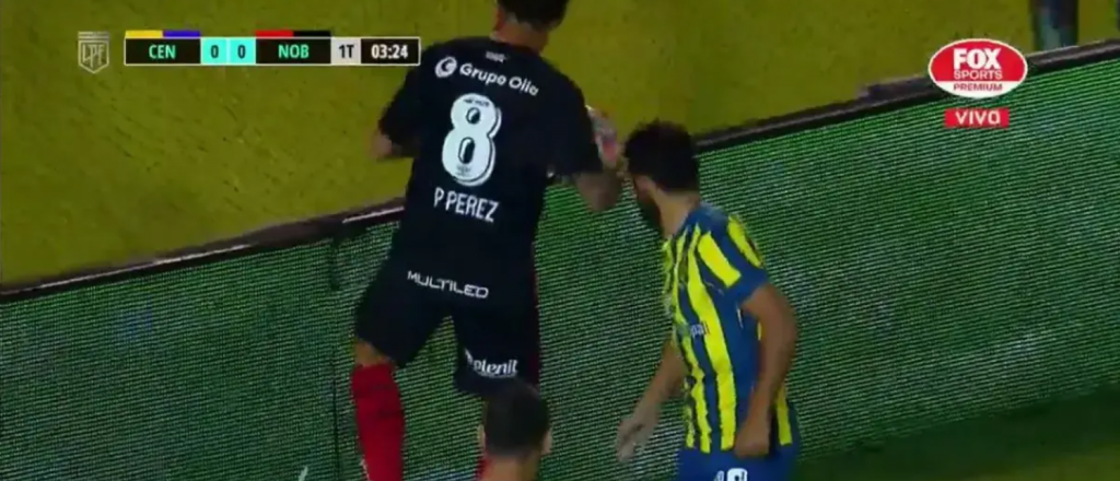 Gamba (28) de Central lo atrapó y lo apartó afuera pero fue Pablo Pérez (8), de Newell's el que dio la nota. Una vez tirado, Pérez pateó varias veces al costos aparato, valorado en Argentina en unos 2500 dólares americanos, una fortuna. Por las dudas, en el segundo tiempo Pérez no salió a jugar.