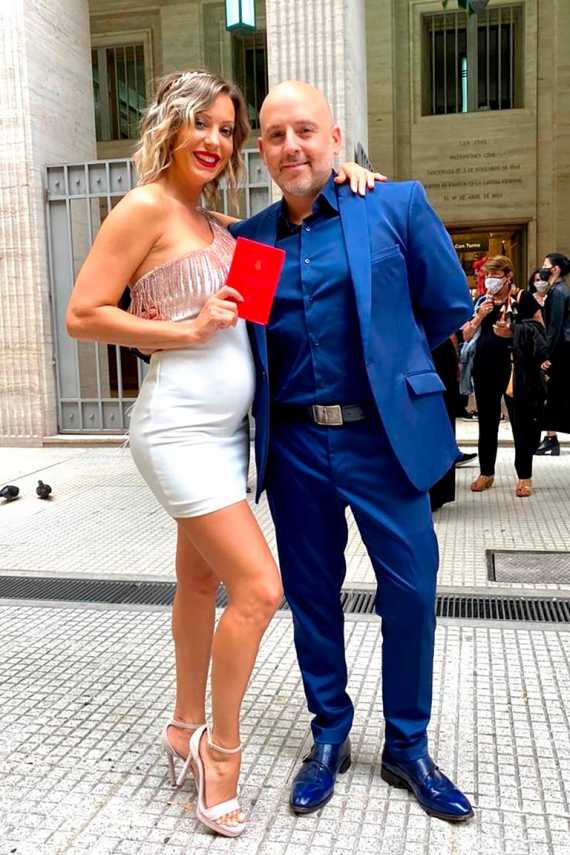 Pero ahora ya con libreta en mano y embarazados de cinco meses compartieron imágenes del casamiento en Capital Federal, al que por la pandemia asistieron pocas personas, una de ellas José María Muscari, con quién Marzol trabajó en la obra Sex, que ofició de testigo.