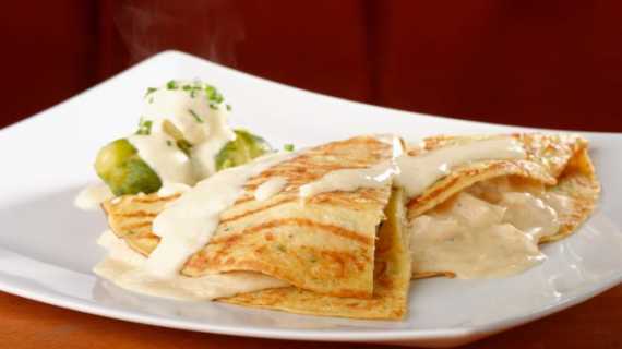Para realizar el relleno de las crepes de pollo, cocinar en una sartén con aceite las pechugas de pollo por ambos lados hasta que se doren. Apartar y dejar que se enfríen. Luego se debe desmenuzar y añadir el queso crema, el choclo, los tomates cherry y el perejil ya triturado. Mezclar todo bien. Agregar el queso por encima y hornearlos a 180 º C durante 20 minutos.