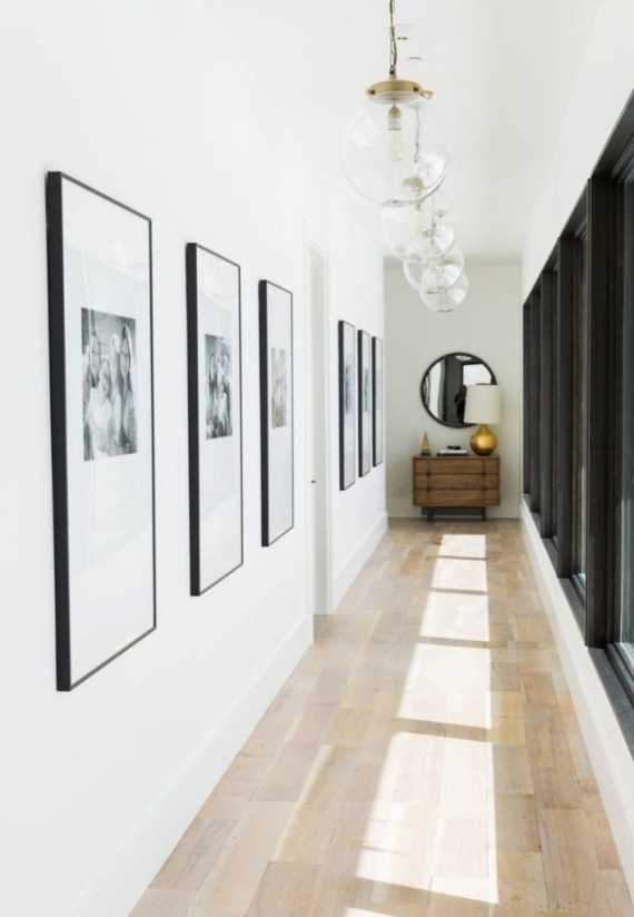 Seguro tenés lindos cuadros, láminas o incluso fotos familiares que andan buscando su lugar. ¿Pensaste en el pasillo como una mini galería de arte? Aquí podés ver la propuesta en diferentes opciones: en las primeras se jugó con lindas fotos familiares en blanco y negro, prolíjamente enmarcadas. En la segunda, los protagonistas son los cuadros y las alfombras que acompañan.