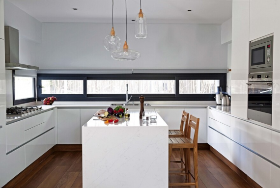 -Es muy importante la entrada de luz durante toda la jornada. Al ser uno de los sectores de la casa en donde se pasa mucho tiempo del día, la necesidad de no tener que encender una lámpara genera confort y agranda el lugar. Un ventanal, un paño fijo sobre la bacha o un lateral, son algunas opciones para iluminar de forma natural.