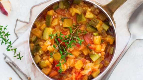 Este es el guiso más fácil. Solo debes procurar cocinar primero el agua con caldo y calabaza, porque la verdura se va desarmando y da una consistencia rica y colorida.