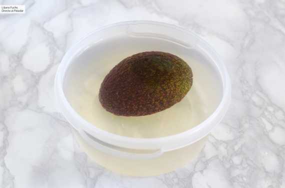 Para ello, no tenemos más que preparar un recipiente del tamaño suficiente para albergar nuestra media palta y llenarla de agua fría, mejor si tiene tapa hermética. Una vez abrimos la palta por la mitad, mantenemos si es posible el carazo en la parte a conservar, y rápidamente lo colocamos en el agua boca abajo, con la piel hacia arriba.