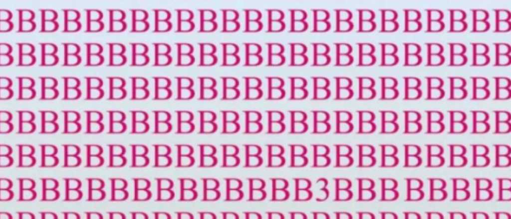 Encontrar el error en la imagen no era nada sencillo, pues la cantidad de letras impedían una percepción veloz. Sin embargo, y mirando con detenimiento, podrás darte cuenta que entre medio de las letras "B" se encuentra el número tres, casi a la mitad de la imagen.
