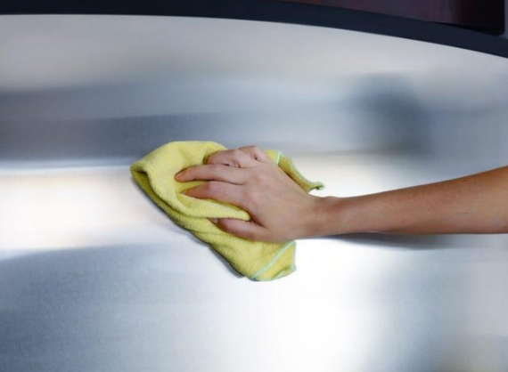 Como dijo a Consumer Reports Nancy Bock del American Cleaning Institute, debés limpiar tus electrodomésticos de acero inoxidable con una toalla de microfibra humedecida en agua tibia y un detergente suave para platos.