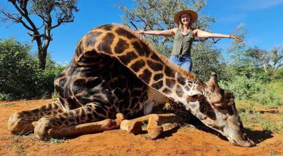 El mundo está lleno de imbéciles y esta mujer es la clara muestra de eso: mató a una jirafa, se sacó fotos con el corazón del animal y dijo que con eso ayudaba a las especies en peligro de extinción.