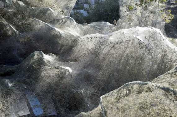 Los vecinos de la ciudad de Aitoliko, a 250 kilómetros al oeste de Atenas (Grecia), despertaron anonadados cuando vieron gran parte del territorio cubierto de telas de araña.