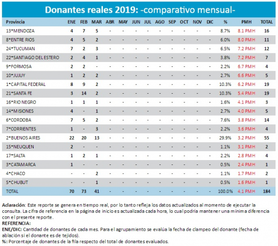 Según datos del Incucai, la provincia ocupa el primer lugar en cantidad de donantes, con 8,01 donantes cada un millón de habitantes. Le siguen Entre Ríos, con 8, y luego Tucumán, con 7,2.