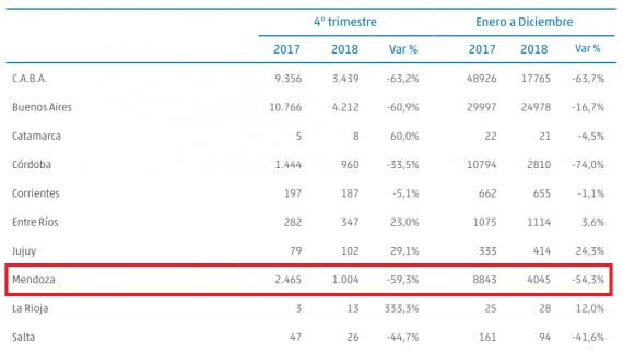 En todo el país la cantidad cayó un 39,6% en todo 2018.