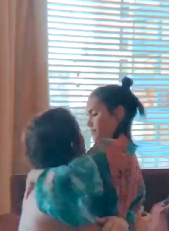 En la filmación, en el hotel, se la ve a los besos en un sillón -aunque no lo aclaró, se estima que es su pareja Santiago Mocorrea-, además de momentos de su staff y cuando se maquilla antes de ir a los Premios Gardel.