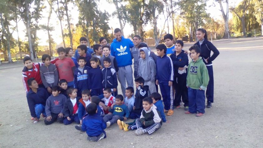 Allí se encontró con pequeños jugadores que sueñan algún día con llegar lejos jugando al fútbol. Aguilera, visiblemente conmovido, escribió en su Facebook personal: "Fue muy emocionante para mí ver a esos niños detrás de una pelota como lo hacía yo, haber compartido esta tarde con ellos y poder decirles que se animen a soñar, que si se lo proponen pueden llegar muy lejos. Gracias Dios, gracias fúbol, por estos momentos de la vida".