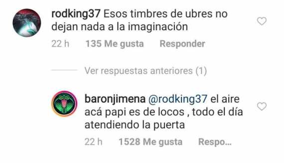 Y la respuesta de Jimena fue hilarante: "El aire acá papi es de locos, todo el día atendiendo la puerta", bromeó. La ocurrente contestación se llevó cientos de ?me gusta'.