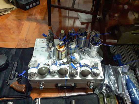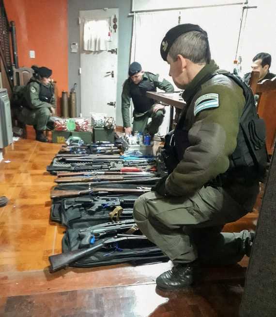 Entre las 2.500 armas secuestradas había granadas, fusiles FAL, fusiles Colt M4, ametralladoras Browning, más de 30.000 municiones de diferentes calibres, pólvora, granadas, minas anti-tanques, balanzas, visores nocturnos, documentación de empadronamiento de armas, partes de armamento, katanas, mientras en el allanamiento de Córdoba hallaron "cuerpos de bombas para aviones, colas de bombas, minas antipersonales y trotil en escamas", entre otros elementos.