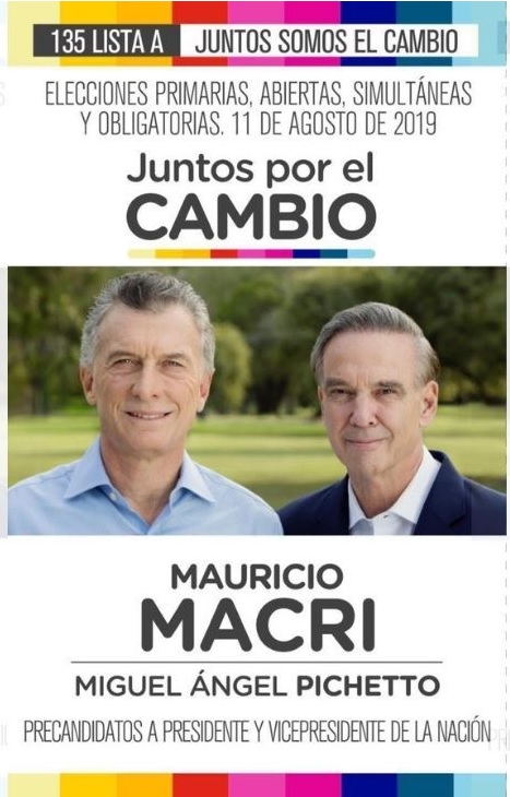 También se ve impreso el nombre de ambos candidatos, aunque el de Macri resalta en letras más grandes, y una fotografía de los dos en el centro de la boleta, con un Pichetto, sin su característica corbata y Macri, con una camisa celeste.
