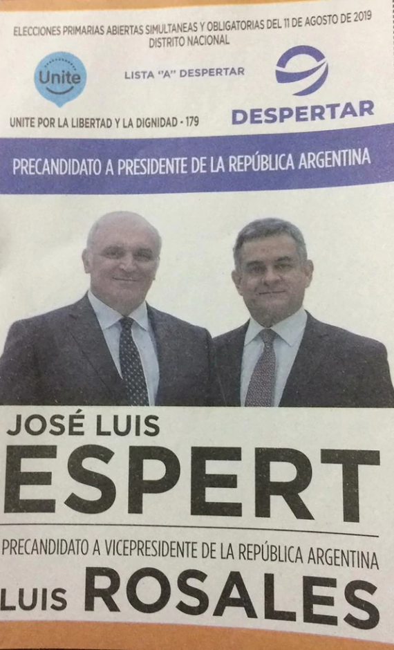 El espacio central de la boleta está reservado para una fotografía en la que se lo verá a Espert acompañado por su compañero de fórmula, ambos vestidos de traje y corbata.