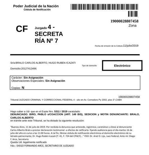 De hecho, el escrito recuerda que, a mediados de abril de 2019, "el denunciado secretario general de la Asociación de Pilotos de Líneas Aéreas, anunció un paro nacional para el 30 de abril, manifestando en esa oportunidad: ?Dejemos de chupar pija, enfrentemos y volteemos a este Gobierno', en su discurso en el plenario del Frente Sindical por el Modelo Nacional".