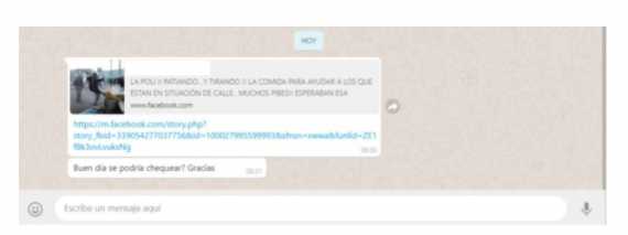 "Esto es la policía y la política de Bullrich y de Cambiemos #SEVAN. La poli patiando (sic) y tirando la comida para ayudar a los que están en situación de calle, muchos pibes esperaban esa comida!!", se lee en una de las publicaciones en Facebook, en referencia a la ministra de Seguridad, Patricia Bullrich, y a la coalición gobernante del presidente, Mauricio Macri.