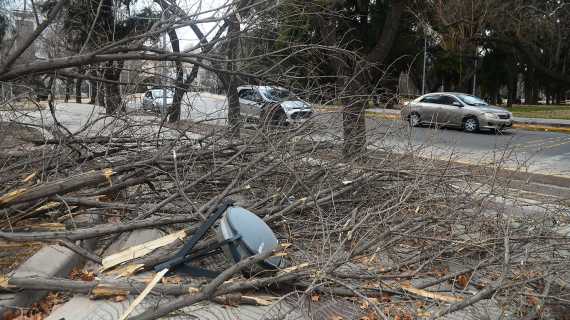 Esto se pudo ver casi en pleno centro, en el Parque Cívico. En los alrededores de la Casa de Gobierno las ramas que cayeron a causa de las fuerte ráfagas ocuparon acequias y calles.
