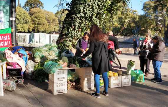A media mañana de este miércoles, organizaciones sociales agrarias, encabezadas por la Unión de Trabajadores de la Tierra, realizaron un "Alimentazo" en la Plaza Independencia y vendieron sus productos en un valor medio de $20.