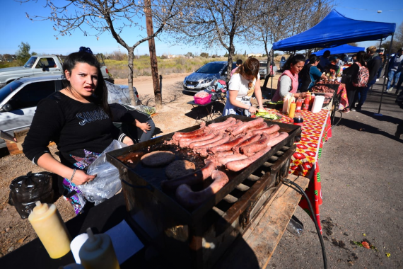 Hubo también mucho merchandising a la venta: remeras y banderas, pero también puestos de venta de choripanes, en clásico en este tipo de eventos del justicialismo.