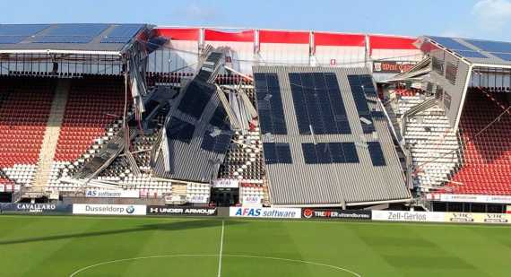 Una tribuna de la cancha de AZ Alkmaar sufrió pérdidas parciales a causa del fenómeno climático. No hubo víctimas.