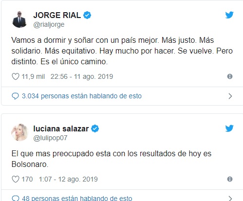 Cuando empezaron a verse las tendencias de las PASO, famosos de uno y otro lado de la grieta empezaron a lanzar opiniones en las redes sociales.