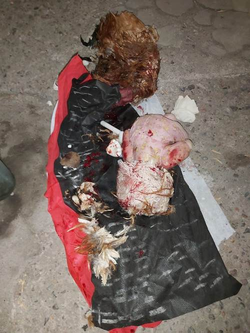 En la medianoche de este viernes se produjo un tenebroso hallazgo en la entrada del hospital Tagarelli: una bolsa negra con un animal muerto, desmembrado, una muñeca y velas.