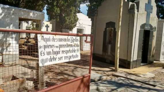 Delincuentes ingresaron al mausoleo de una familia en el cementario de Villa Atuel. El pequeño había fallecido en 1950. También profanaron tumbas.