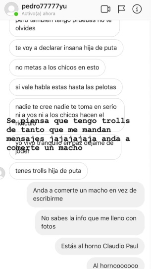 Nannis asegura que él se hizo la cuenta trucha Pedro77777y para chatear desde allí.