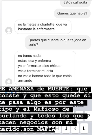 En uno de los presuntos chats, el ex futbolista dice que Charlotte está arruinada.