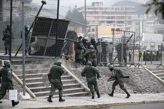 La agencia EFE informó que los protestantes ingresaron luego de derribar vallas de seguridad, al grito de "fuera Moreno", en alusión al presidente de Ecuador que la semana pasada resolvió eliminar los subsidios a los combustibles en acuerdo con el FMI.