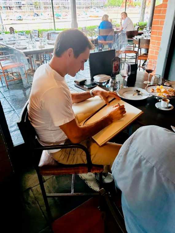El suizo fue a almorzar este lunes al mediodía a una parrilla en Puerto Madero, a metros del hotel en donde se encuentra hospedado junto con el alemán, quien reemplazó a Juan Martín Del Potro en la exhibición.
