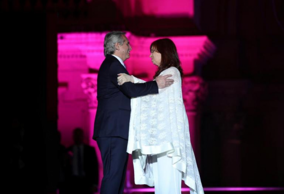 Pasadas las 20, luego de una extensa jornada de festejos por la asunción de Alberto Fernández a la presidencia, la dupla que gobernará la Argentina por los próximos cuatro años subió al escenario montado para los artistas invitados.