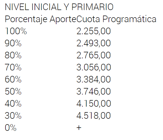 Las cuotas quedarán establecidas de la siguiente manera según el nivel: