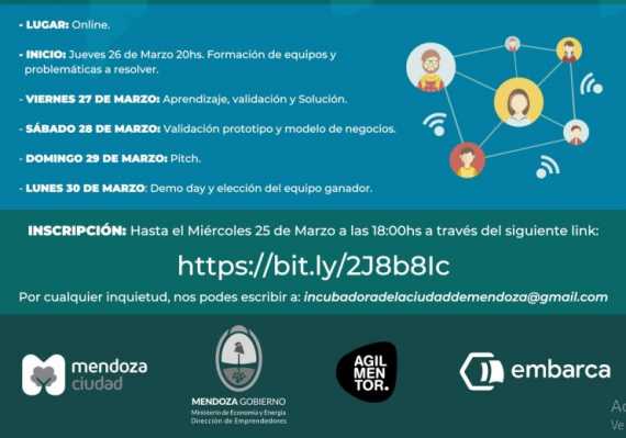 En medio de la cuarentena obligatoria por el coronavirus Covid-19, la Dirección de Emprendedores de la Ciudad de Mendoza, D33, la Dirección de Emprendedores del Ministerio de Economía de la Provincia, Agilmentor y Embarca invitan a participar del Hackaton Online #GanaleAlVirus.