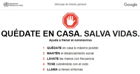 Hoy Google te pide: "Quedate en casa, salvá vidas"
