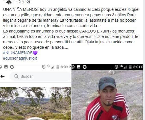 La pequeña, de tres años, fue encontrada muerta en su casa del paraje Las Mochas, de la localidad rionegrina de Los Menucos. Cuando se hizo la autopsia, el estudio foresne reveló que la nena había muerto por un "hematoma en la zona craneal", pero también había golpes anteriores en su cuerpo.