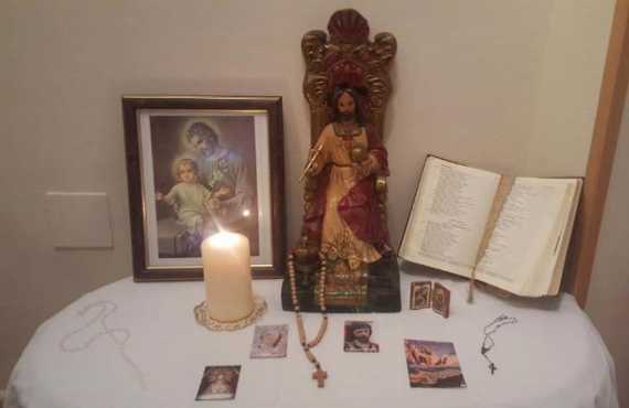 Es recomendable colocar un pequeño altar para con la Sagrada Biblia, un crucifijo y alguna vela blanca.
