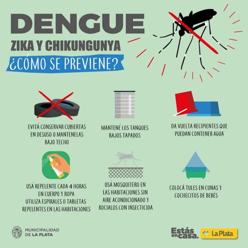También es importante prevenir la picadura del mosquito: usando siempre repelentes siguiendo cuidadosamente las recomendaciones del envase, utilizando ropa clara que cubra los brazos y las piernas, especialmente durante las actividades al aire libre y colocando mosquiteros en puertas y ventanas, y cuando sea posible usar ventiladores o aire acondicionado en las habitaciones.