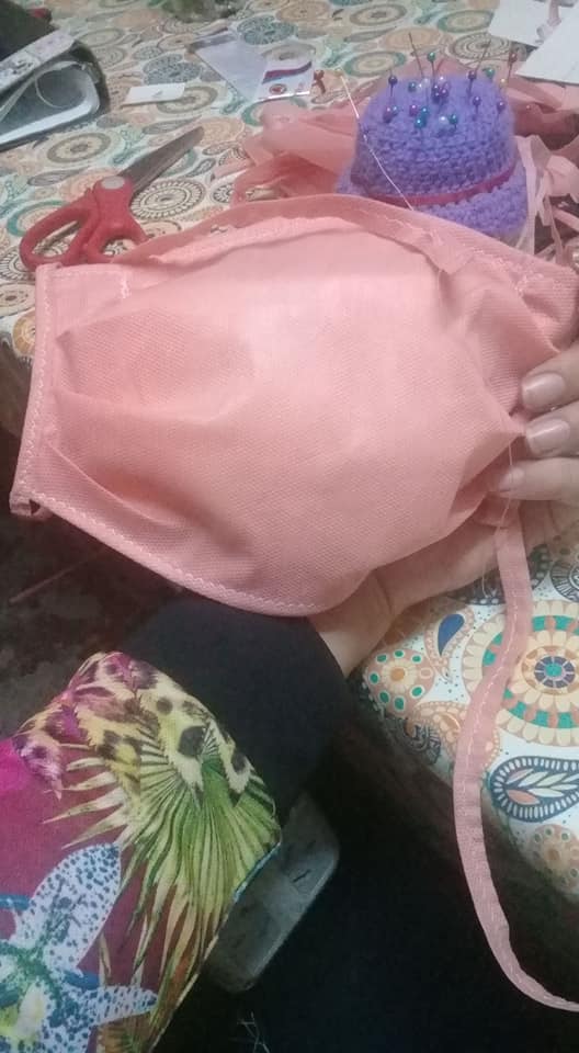 Virginia Arias, vive en Villa Atuel (San Rafael) y se encuentra confeccionando barbijos. Sin embargo, ella ha decidido que no están a la venta, sino que los cambia por alimentos no perecederos para donárselo a las familias que se encuentran sin recursos debido a que no pueden salir a trabajar.