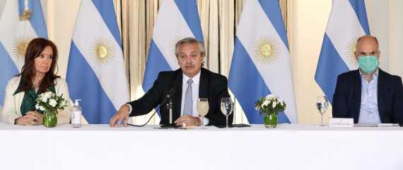 "Gracias al jefe de Gobierno porteño, al gobernador de Jujuy, de Corrientes, de Mendoza, a todos los gobernadores de la oposición, y a los nuestros, por acompañarnos siempre", señaló el Presidente, en referencia primero a Horacio Rodríguez Larreta, Gerardo Morales, Gustavo Valdés y Rodolfo Suárez.