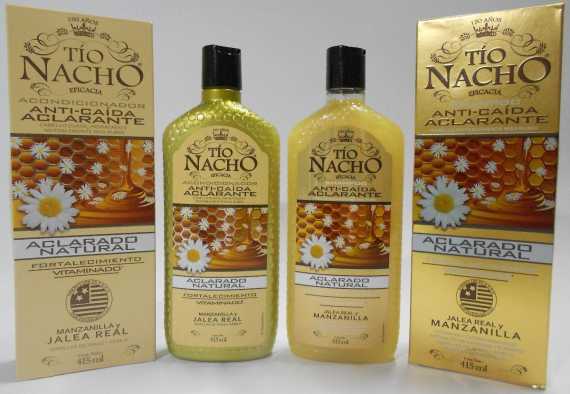 Comienzo con los dos productos más populares e importantes de la marca, siendo los más utilizados y famosos "Tío Nacho manzanilla" y "Tío Nacho jalea real" (el anticaída).