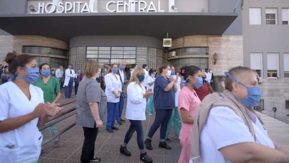 Profesionales de la Salud de Mendoza fueron homenajeados por bomberos voluntarios en distintos puntos de la provincia, con motivo de la tarea diaria en el contexto de la pandemia mundial. El acto principal se realizó en la explanada del Hospital Central y estuvo a cargo del Cuartel de Bomberos Voluntarios de Luján de Cuyo. Allí se vivió una jornada emotiva que incluyó la suelta de globos, se escucharon las sirenas y entregaron flores a enfermeras.