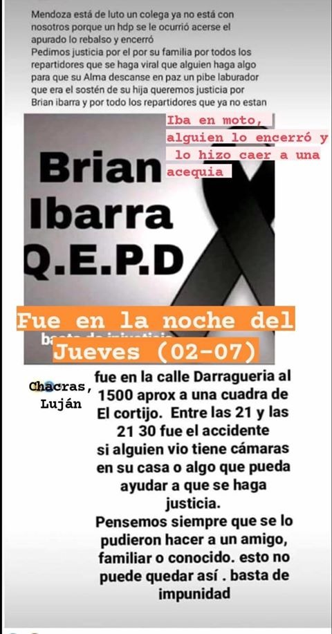 Familiares y amigos del delivery que murió trabajando piden ayuda