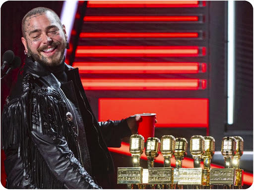 Post Malone fue el gran protagonista de la noche al quedarse con nueve estatuillas, entre las que se destacan la que reconoce al "mejor artista masculino" y al "mejor artista del año", la categoría más importante.