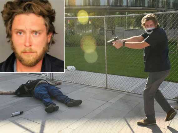 Varios videos muestran el momento en que el militante de extrema izquierda ejecuta al veterano del Ejército. El tirador era, además, guardia de seguridad de un canal de noticias.